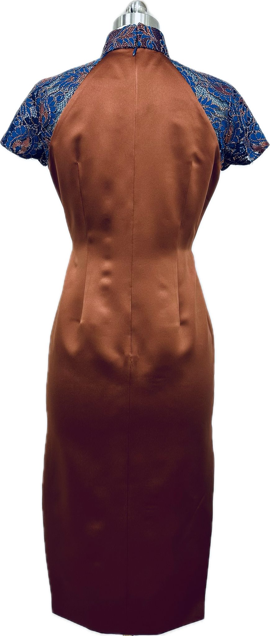 Neckline & Sleeves: Classic mandarin collar and short lace cap sleeves, staying true to traditional qipao style.